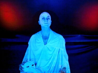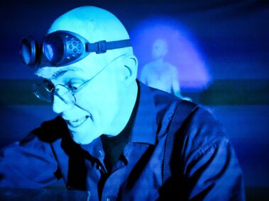 Aus zwei Seelen in der Brust erwächst in diesem Mono-Drama ein vielstimmiger Chor. Max Pfnür spielt in dieser abendfüllenden, gewaltigen Solo-Performance alle Figuren aus FAUST I und II. Die ewige Tragödie vom Strebenden und seiner Verantwortung. Mit jeder Episode, vom Gretchen-Drama bis zur Unterwerfung der Natur im monumentalen Dammbau, steigert sich die Frage nach der Verantwortung des Tätigen. Kritisch legt das Theater offen, wo und wie sich das Verantwortungsgefühl durch den Mephistopheles beschwichtigen lässt – wo ein jeder sich schon einmal sagte: „Das steht mir zu!“, „Das ist das Mittel wert!“